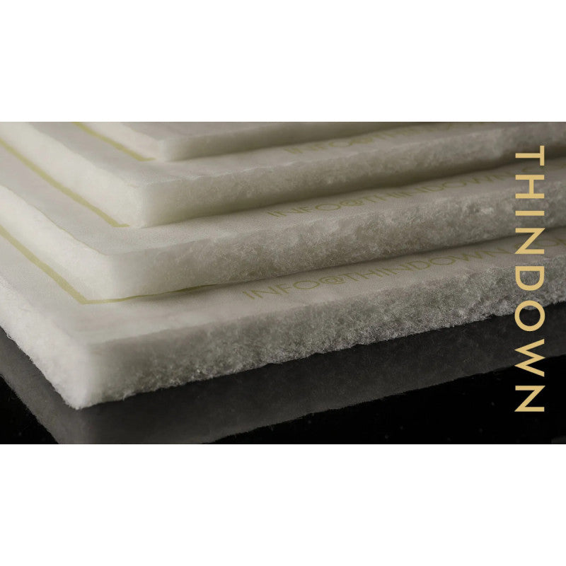 革新的な Thindown™ を採用したダウンファブリックは、一般的な化繊中綿の約半分の厚みでありながら、しっかりとした保温性と快適さを実現します。